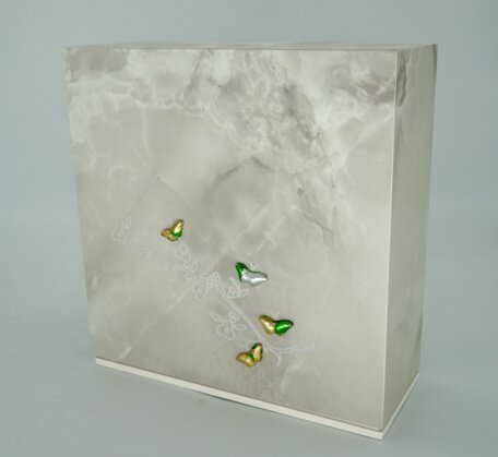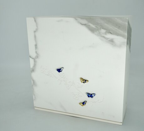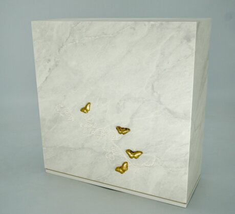 U04BL671 - Bianco lasa con farfalle foglia oro